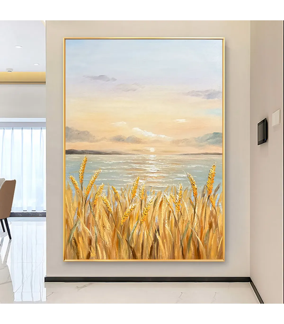 Each piece is meticulously hand-painted by skilled artists using high-quality oil pigments and canvas. The result is a durable, fade-resistant artwork that maintains its vibrancy over time. Whether you’re decorating a new home or refreshing your current space, this abstract wheat field and sea painting offers a harmonious blend of nature, art, and design.