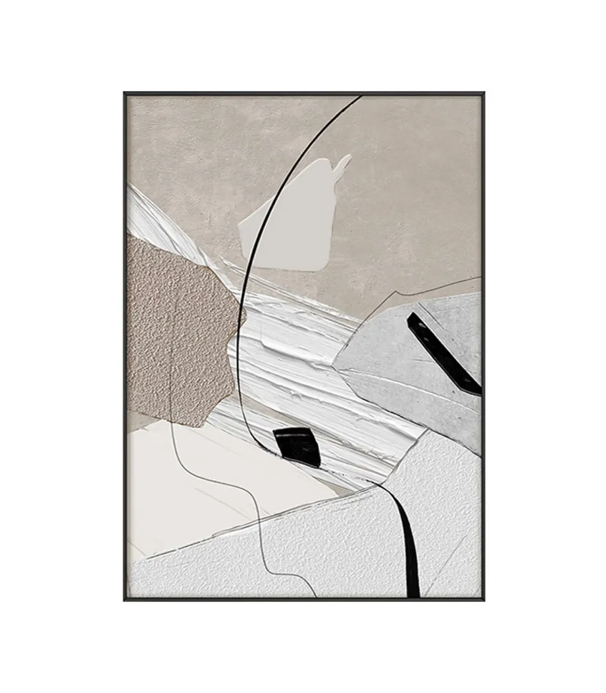 This hand-painted abstract oil painting blends soft beige, white, and gray tones with bold geometric forms, creating a refined yet expressive visual statement. The textured surface and layered composition evoke depth and sophistication, making it a perfect choice for minimalist interiors. Whether displayed in a living room, hallway, or above a sofa, this large canvas art adds warmth and character to any space.
