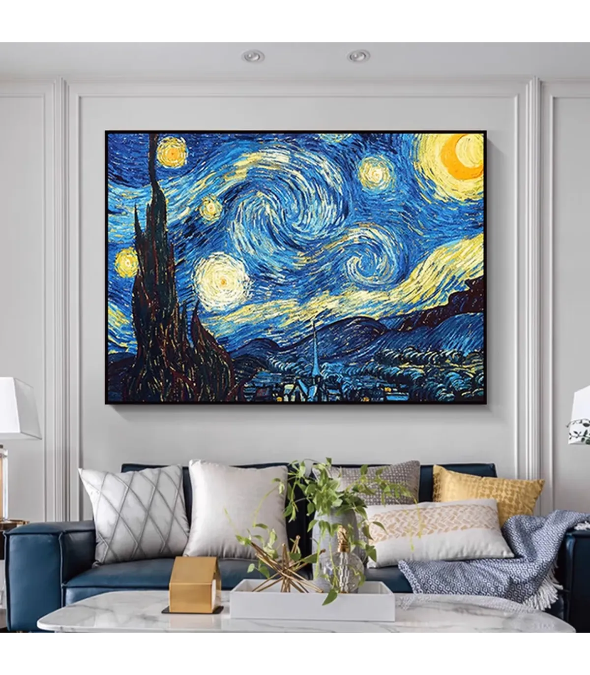 Whether you're decorating a minimalist apartment, a contemporary villa, or a stylish café, this abstract oil painting adapts effortlessly to various environments. Its universal appeal makes it ideal for cross-border shoppers seeking elegant wall art that blends cultural resonance with modern design. Add a touch of artistic serenity to your space with this starry night canvas.