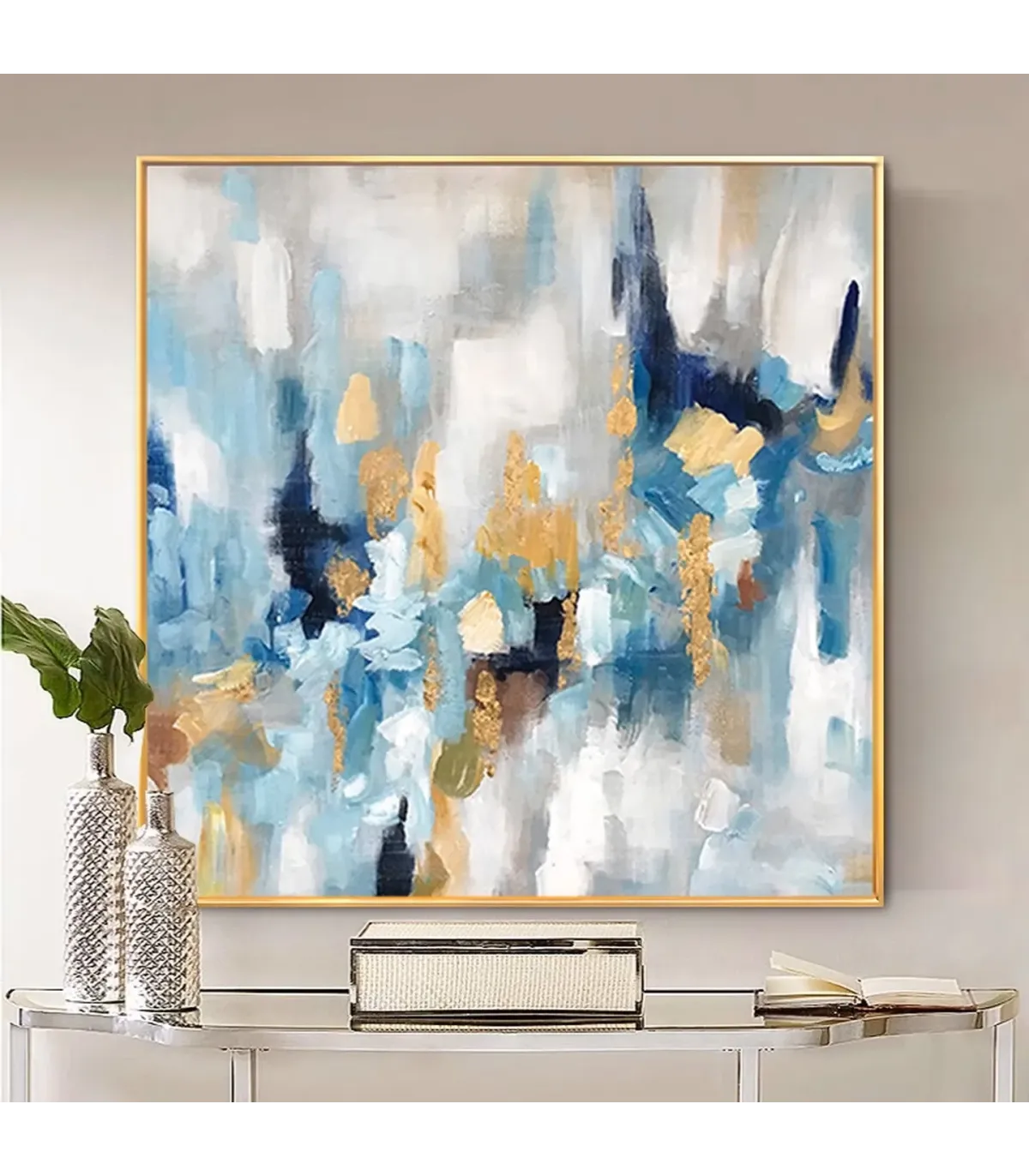 Whether displayed above a console table, behind a sofa, or in a dining room, this large-format abstract painting adds visual interest and emotional resonance. Its universal design language appeals to global audiences seeking minimalist yet luxurious decor. Perfect for cross-border buyers looking for hand-painted abstract art, textured gold foil wall decor, and modern statement pieces for home or office.