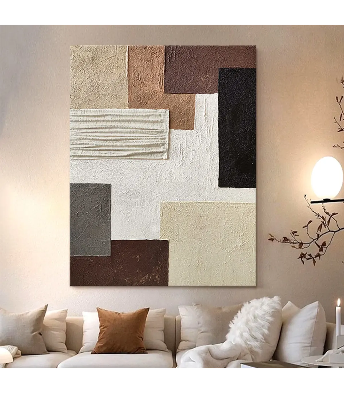 Designed to harmonize with modern furniture and neutral palettes, this geometric textured wall art fits seamlessly into minimalist, Scandinavian, or Japandi-style homes. Its abstract composition and oil-painted texture make it ideal for sofa background walls, hallway entrances, or feature walls in open-plan living areas. Whether you're curating a calm atmosphere or adding visual intrigue, this piece adapts effortlessly to your design vision.