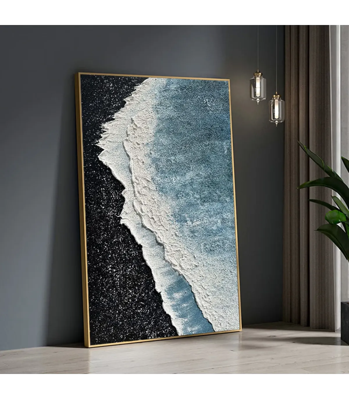 Designed for international buyers seeking unique wall decor, this abstract oil painting suits a wide range of interior styles—from Nordic minimalism to urban chic. Its celestial ocean theme and tactile surface make it perfect for entryways, living rooms, or gallery walls. Whether you're decorating a home, office, or hospitality space, this large-format artwork delivers visual impact and timeless elegance. It’s more than decoration—it’s an immersive art experience.