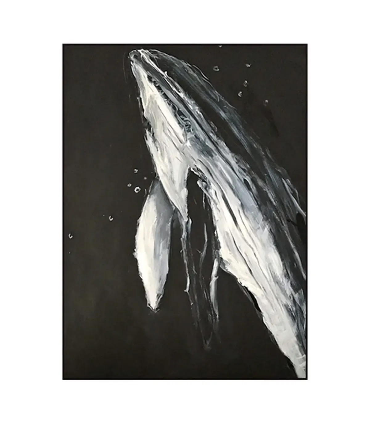 Designed for contemporary homes, this abstract black and white whale painting captures motion and serenity in one sweeping composition. The hand-painted oil texture adds depth and authenticity, making it a refined choice for living room wall art or hallway decoration. Its monochrome palette complements minimalist, Scandinavian, or Japandi interiors, offering a timeless focal point that speaks to both art and nature.