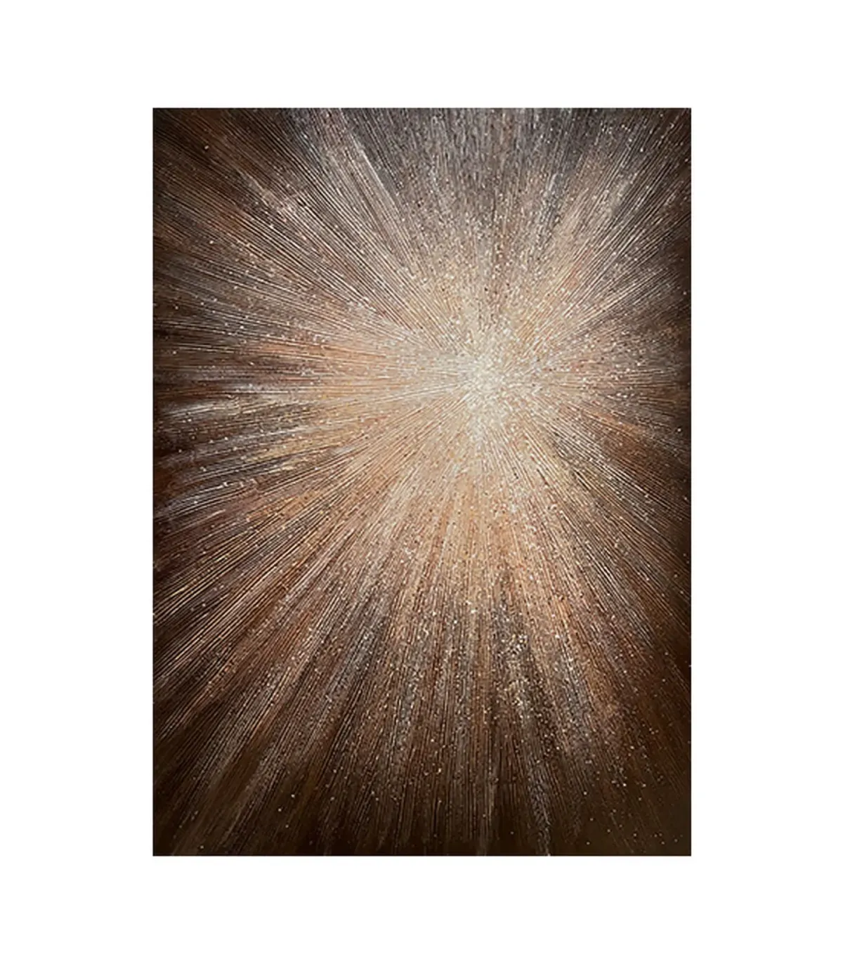 This hand-painted artwork captures a cosmic explosion of light with fine lines and warm beige tones, evoking both energy and serenity. Ideal for a Modern Minimalist Wall Art Fireplace or a Beige Minimalist Wall Art Entryway, it adds depth and movement to quiet spaces while maintaining a clean, contemporary aesthetic.