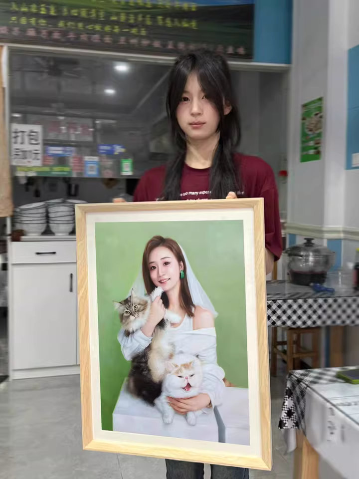 This framed portrait looks so classic and expensive. I sent an art photo and received a stunning hand-painted version. It arrived well-packaged and is an incredible commemorative gift for my family.