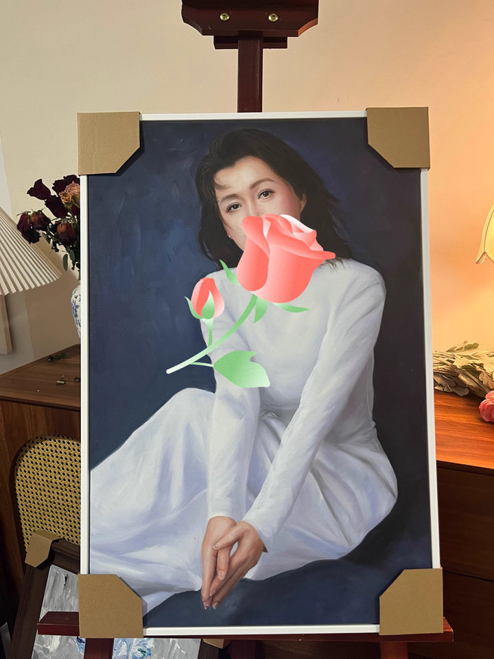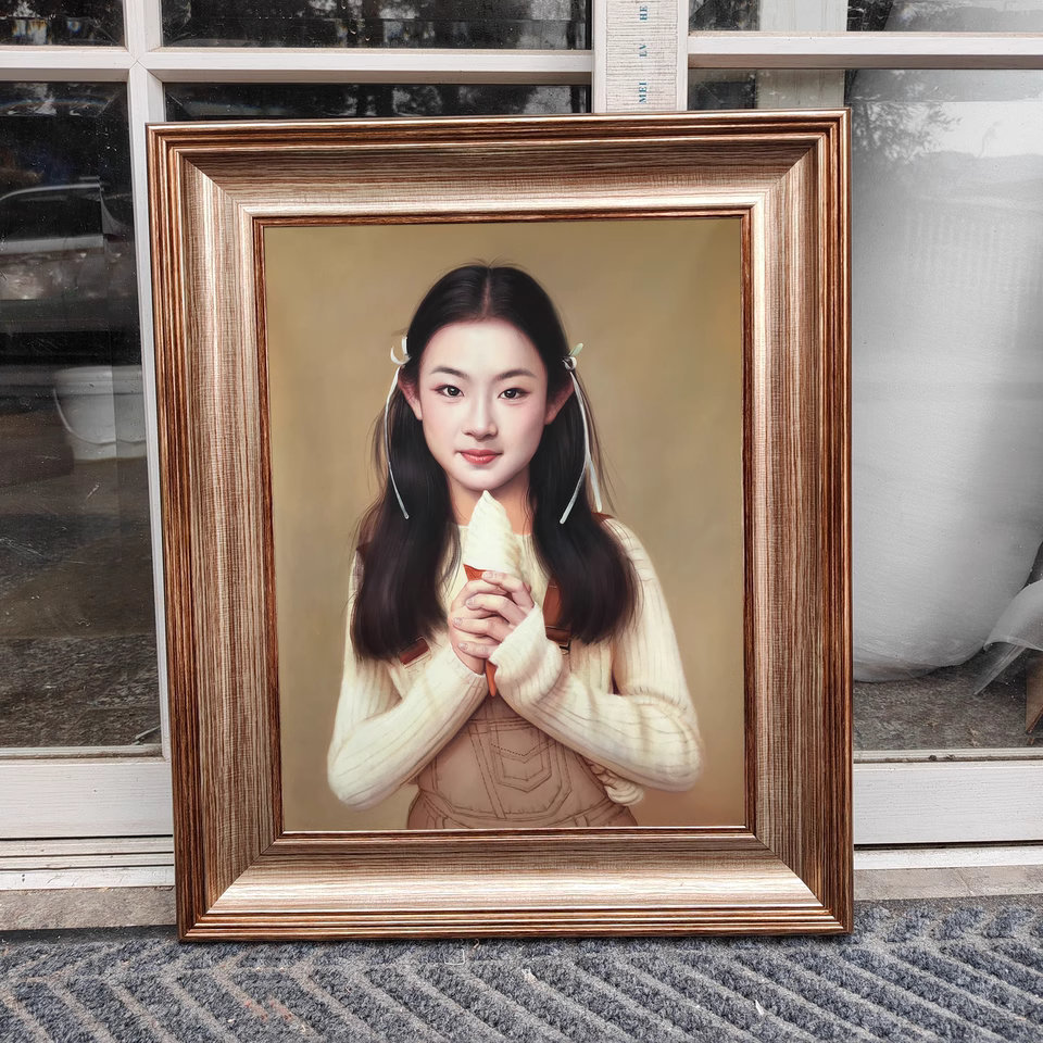 This custom hand-painted oil portrait captured the dreamy atmosphere of my artistic photo perfectly. The brushwork is delicate and the colors are stunning. It is truly a unique piece of art for my home.