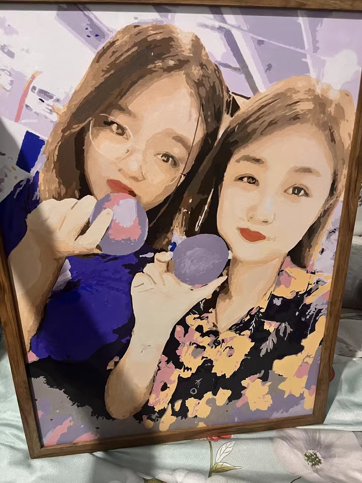 Ordered this bespoke friendship portrait as a surprise. The hand-painted details bring so much more warmth than a digital print. It is a meaningful personalized home decor piece for us.