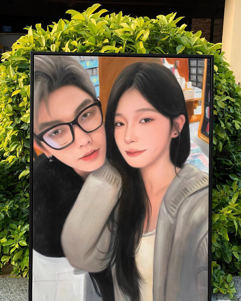We turned our favorite selfie into a bespoke canvas painting. The warm tones and soft brushwork are so romantic. It??s the perfect commemorative artwork to celebrate our time together.
