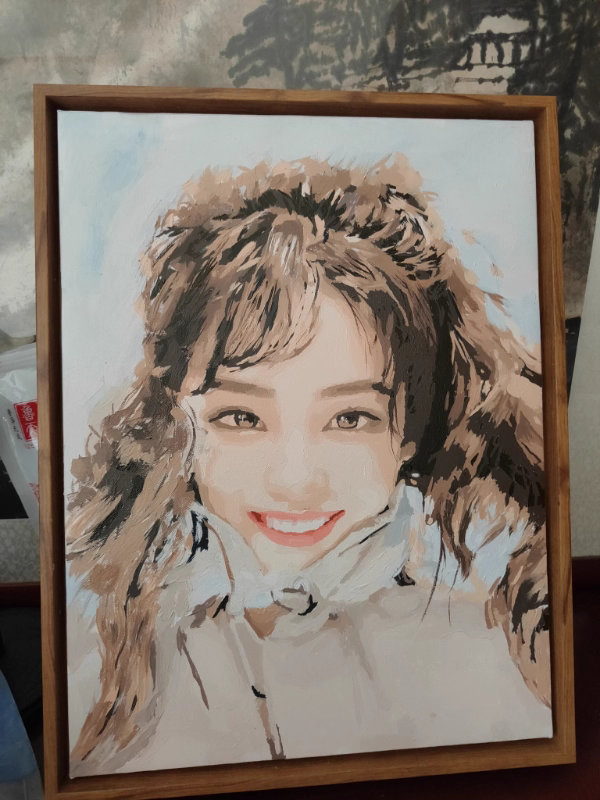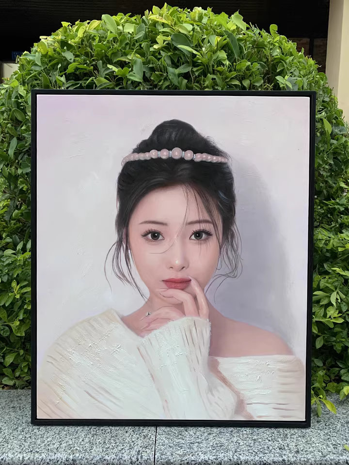 This artistic portrait customization exceeded my expectations. The brushwork on the sweater and the delicate facial features show true craftsmanship. A perfect decorative piece for my modern bedroom.