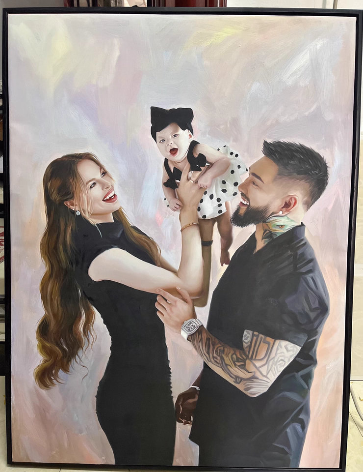 I am so impressed with this family portrait painting. The details on our faces and the baby's expression are so lifelike. It is a beautiful piece of art that we will cherish as a family forever.
