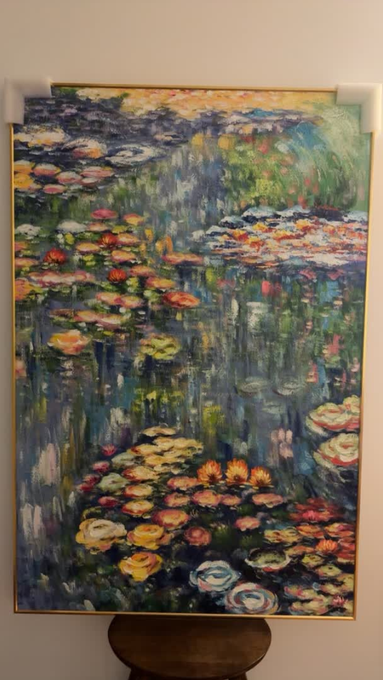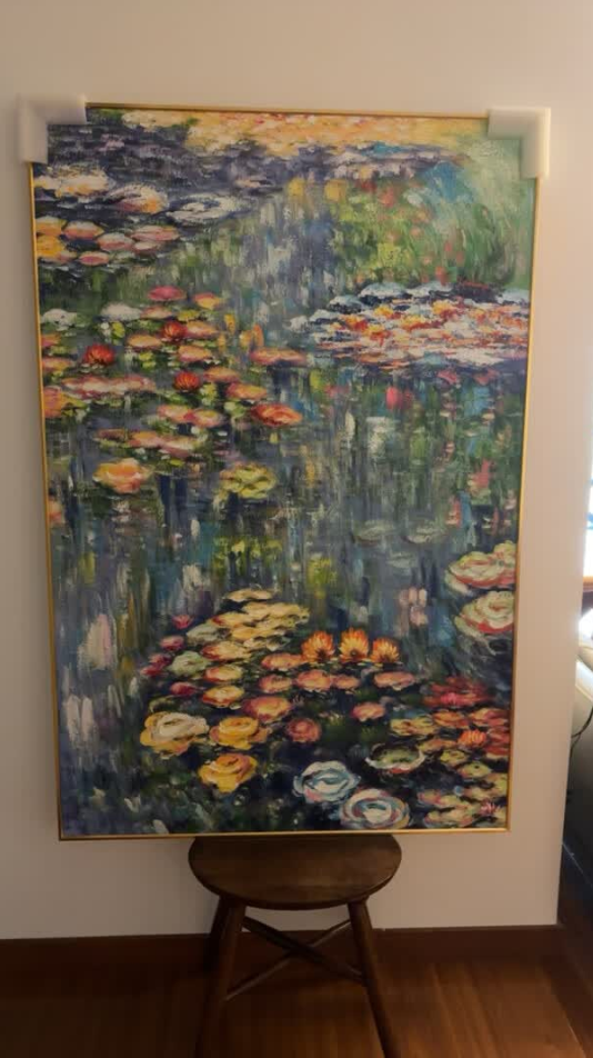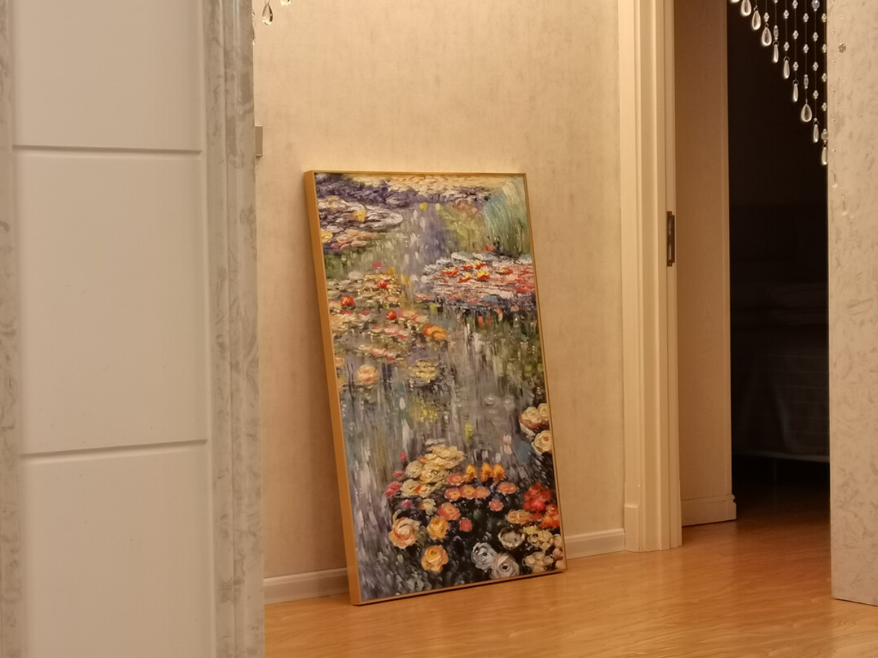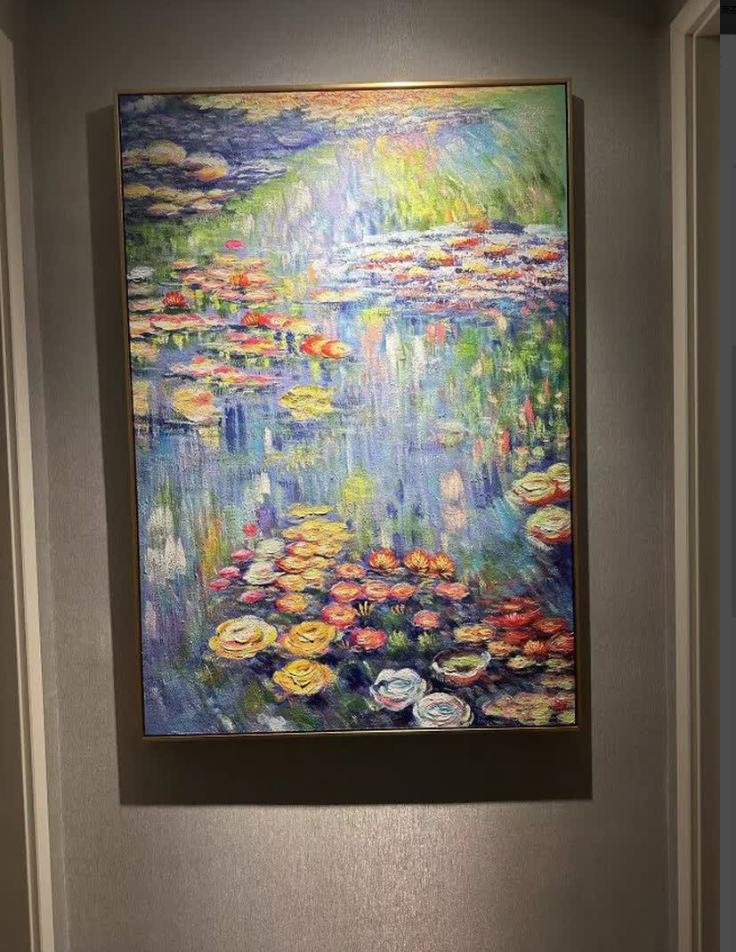 The water lilies design is serene and artistic. It fits perfectly with my minimalist home style and adds a luxurious feel. The painting arrived safely, well-packaged, and earlier than expected. Customer service was attentive and professional, making the entire buying experience smooth and enjoyable.