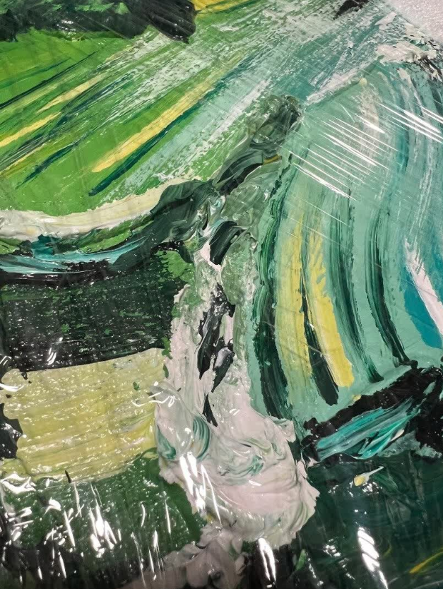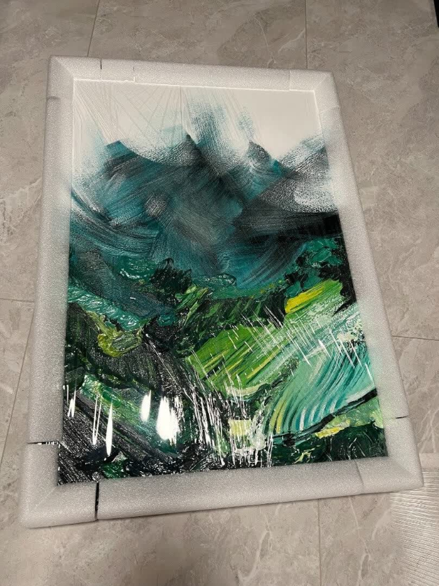 The painting is a true work of art. The thick oil texture and abstract landscape are visually stunning. It’s perfect for my entryway and adds a refined touch. Very happy with the service.