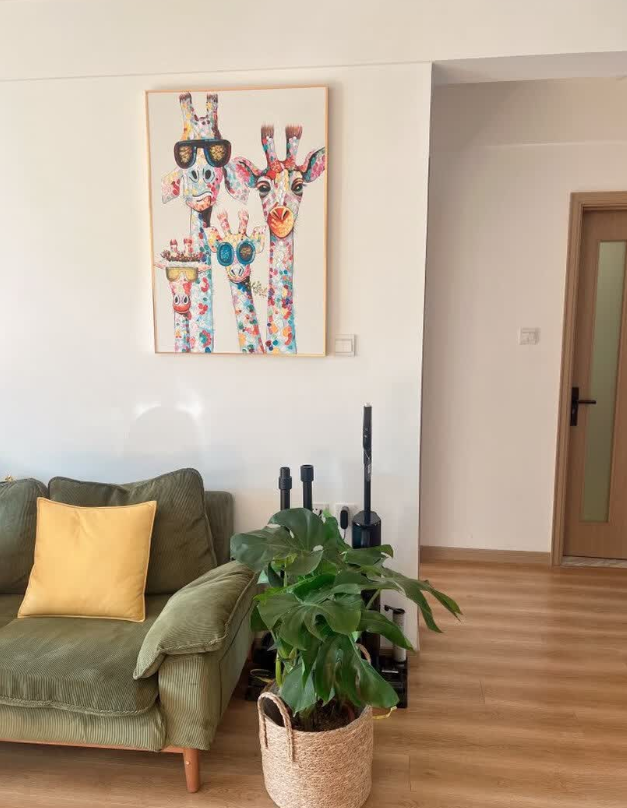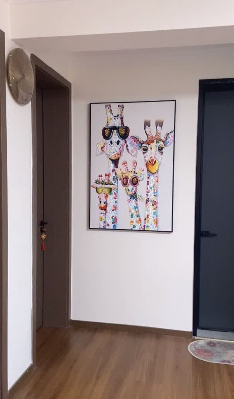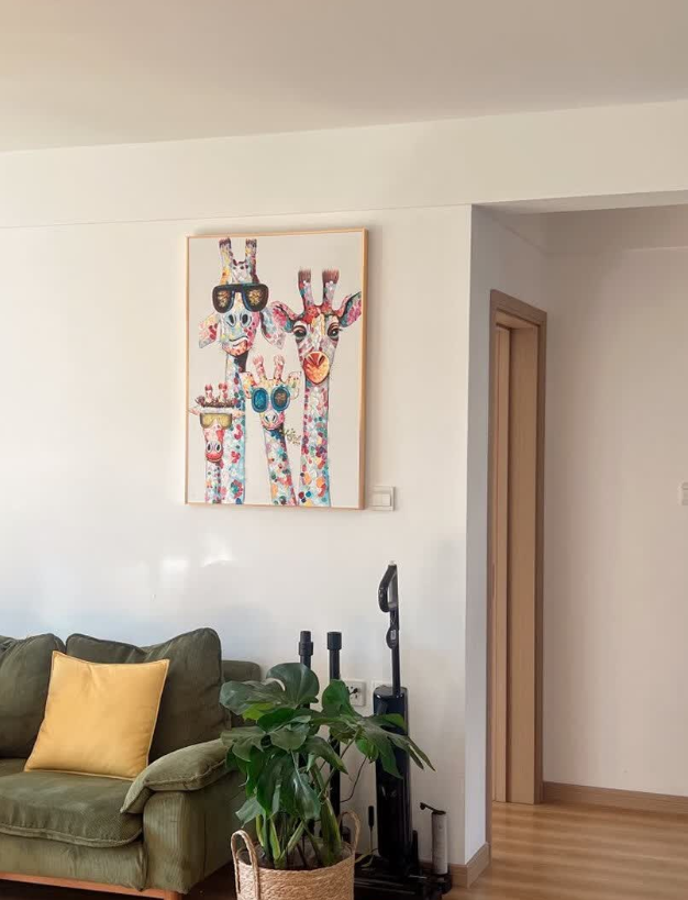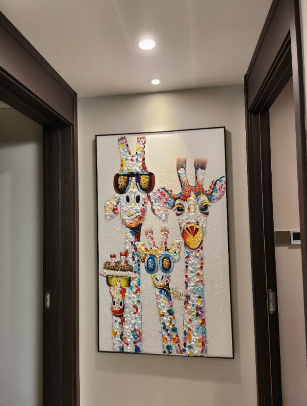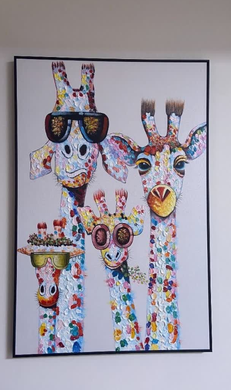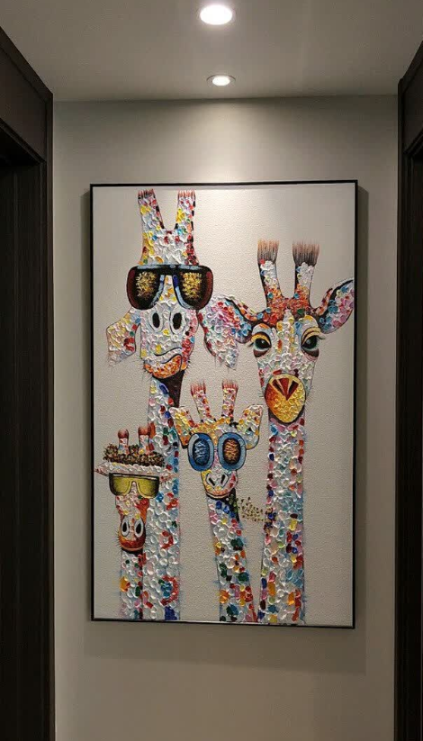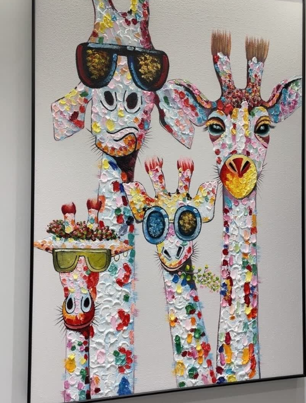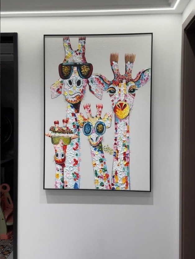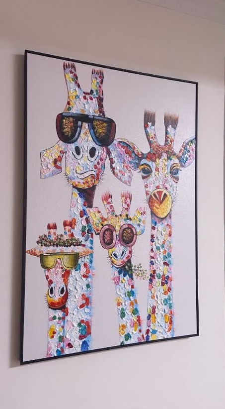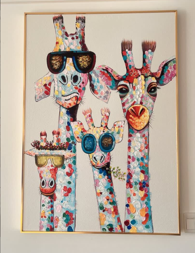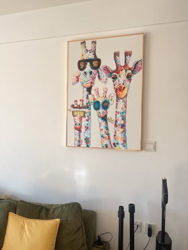 This giraffe family painting is full of expressive charm. The hand-painted details are rich and the colors are vibrant. It adds a joyful and artistic touch to our home. The packaging was excellent and delivery was on time.