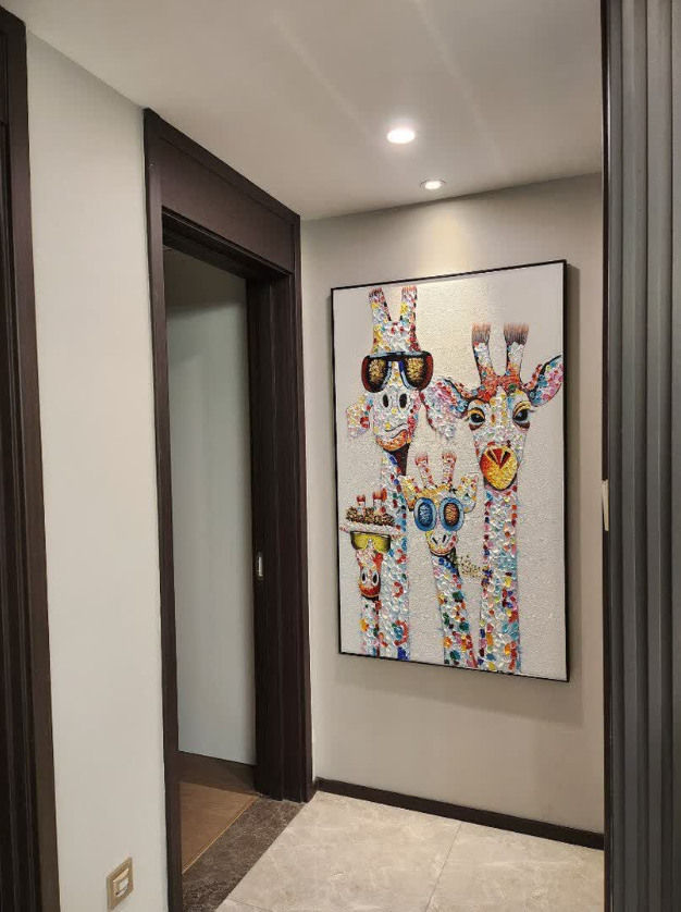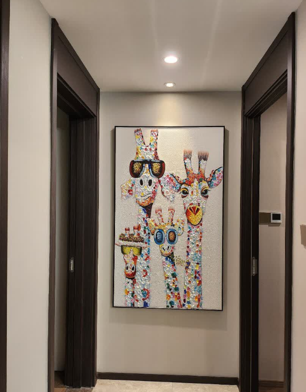 This giraffe family painting fits perfectly with our modern decor. The hand-painted texture and vibrant colors make it a focal point in our living room. It’s both playful and elegant. Delivery was smooth and the canvas was well protected.