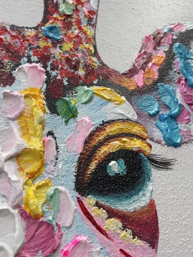This giraffe painting is a cheerful masterpiece. The hand-painted texture and vibrant palette make it a standout piece in our living room. It’s both artistic and heartwarming, and the quality is superb. The canvas arrived safely and the delivery was prompt.