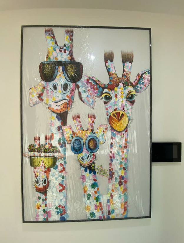 This giraffe family wall art is charming and full of expression. The hand-painted details are exquisite and the composition is balanced and joyful. It’s a beautiful piece of oil painting that enhances our home’s atmosphere. Delivery was prompt and the canvas was well-packaged.