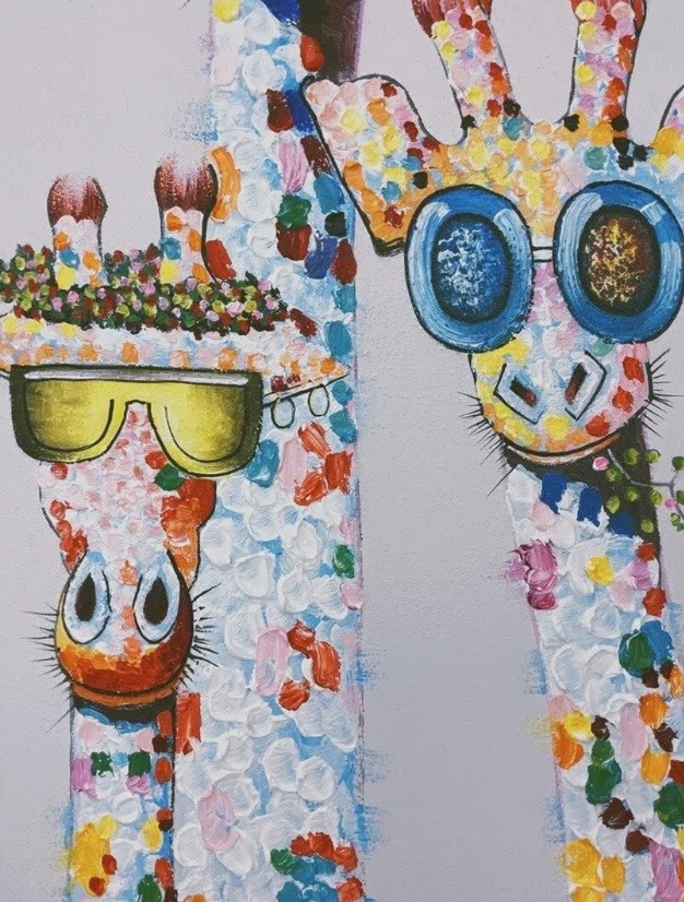 The craftsmanship of this giraffe painting is outstanding. The hand-painted details are rich and the composition is full of personality. It’s a lovely piece of wall art that adds warmth and creativity to our home. Shipping was fast and the canvas was well protected.