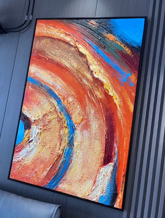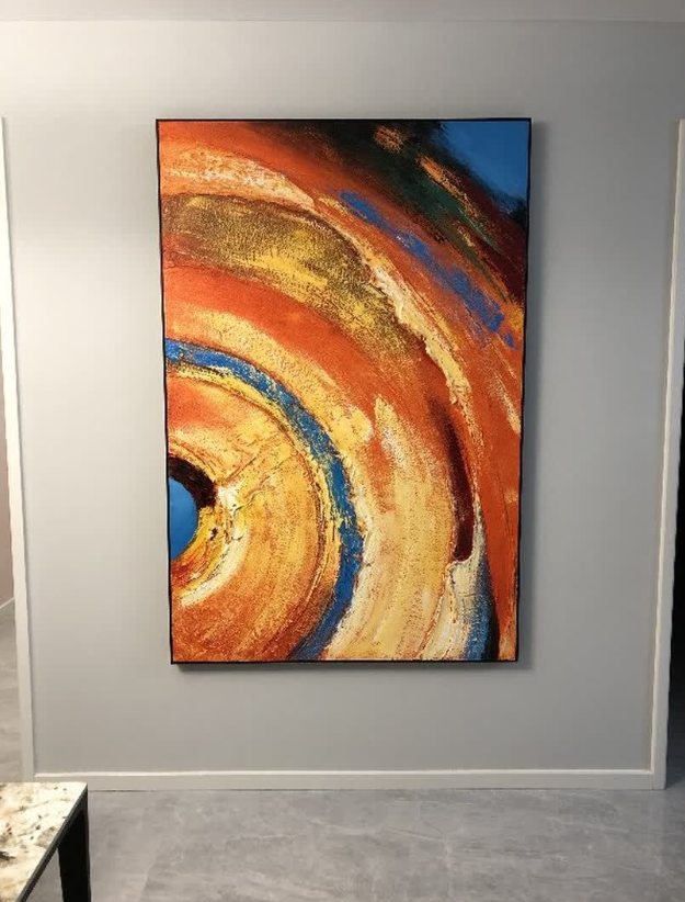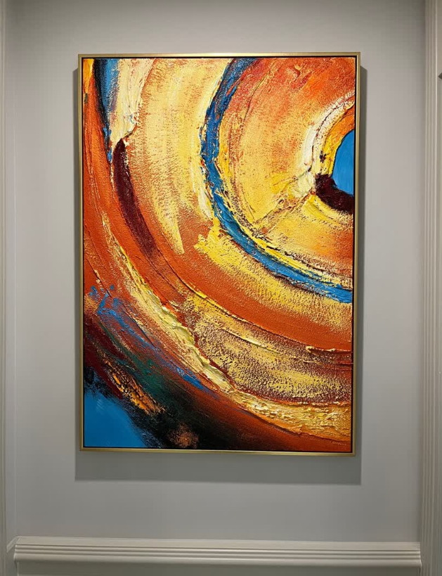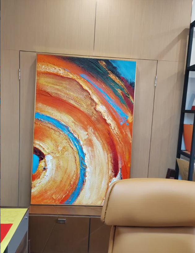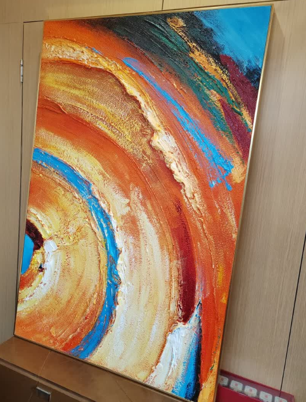 I’m impressed by the luxurious texture and vibrant colors of this abstract oil painting. It adds a sophisticated touch to our interior and feels like a custom piece. The packaging was excellent and the service was professional throughout.