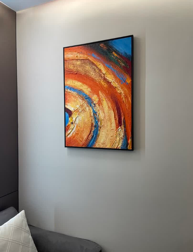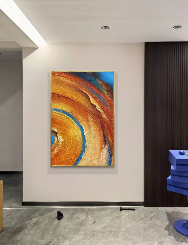 This hand-painted abstract wall art exceeded my expectations. The orange tones are bold yet tasteful, and the texture adds a luxurious feel to our living room. It arrived well-packaged and in perfect condition. A beautiful piece of modern decor.