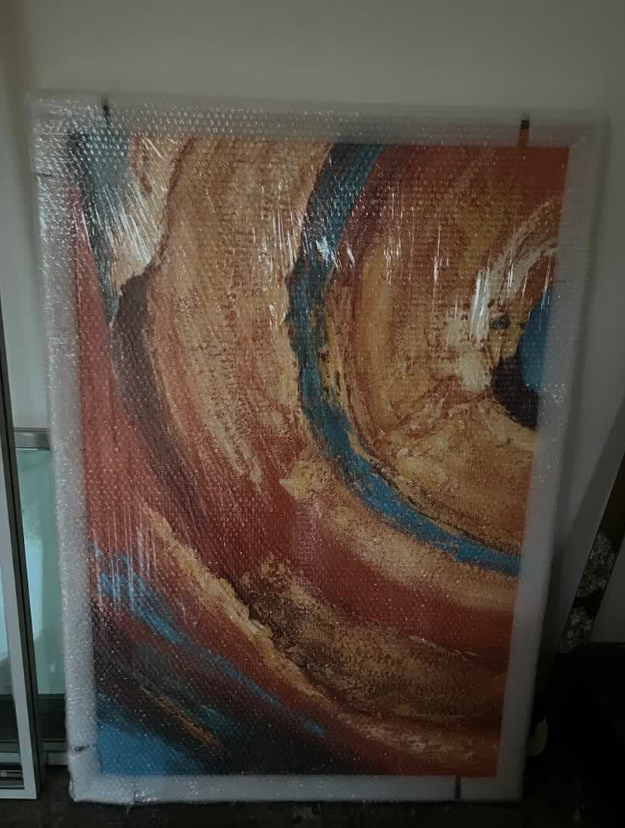 This hand-painted abstract painting is a true statement piece. The texture and color palette are stunning, and it instantly elevated the look of our living room. The seller was responsive and the delivery was smooth. Highly recommend.