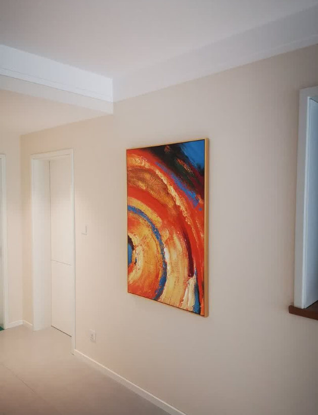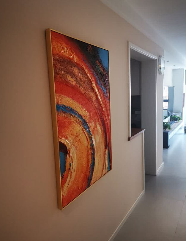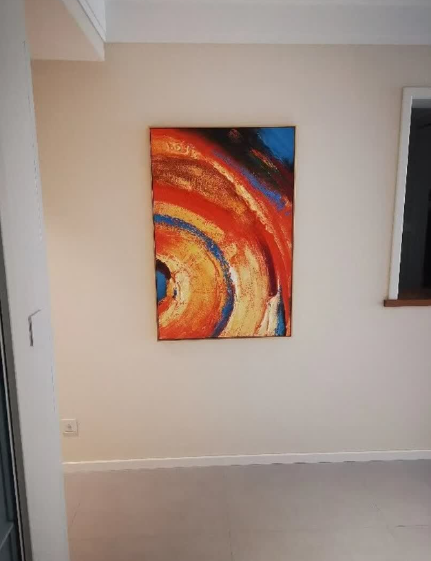 This painting speaks volumes without saying a word. The abstract design and warm orange palette create a calming yet bold atmosphere. It’s clearly hand-painted and the craftsmanship is top-notch. A great addition to any modern space.