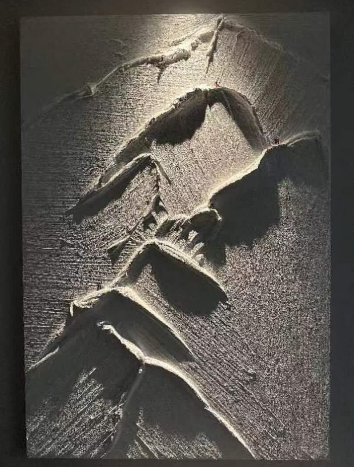 This textured painting is a masterpiece of minimalist design. The white mountain strokes are bold and expressive, creating a serene focal point in our hallway. The abstract style blends beautifully with our neutral palette. Delivery was smooth and the packaging was secure.