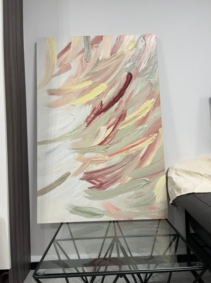 The abstract oil painting is subtle yet expressive. It adds a refined touch to our home without overpowering the space. The textured surface and soft palette are perfect for minimalist interiors. Customer service was responsive and helpful.