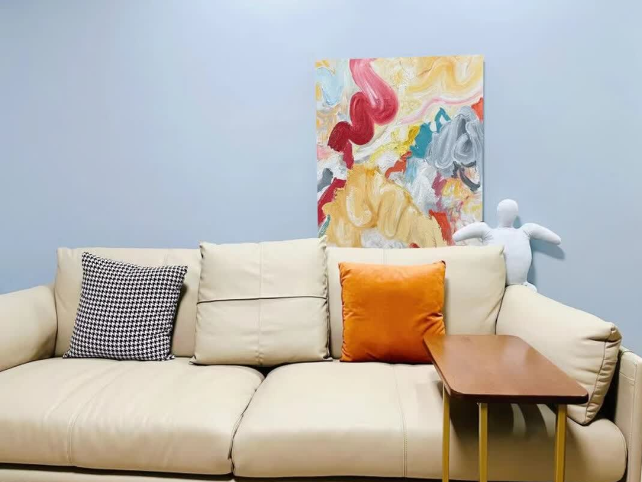 This modern abstract painting has become the centerpiece of our living room. The hand-painted texture and color balance are exquisite. It’s a beautiful example of minimalist wall art that adds warmth and style.