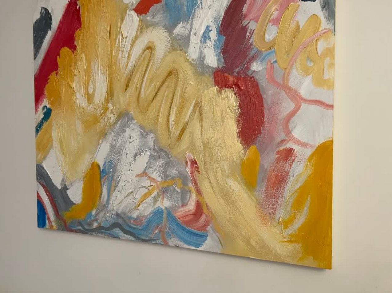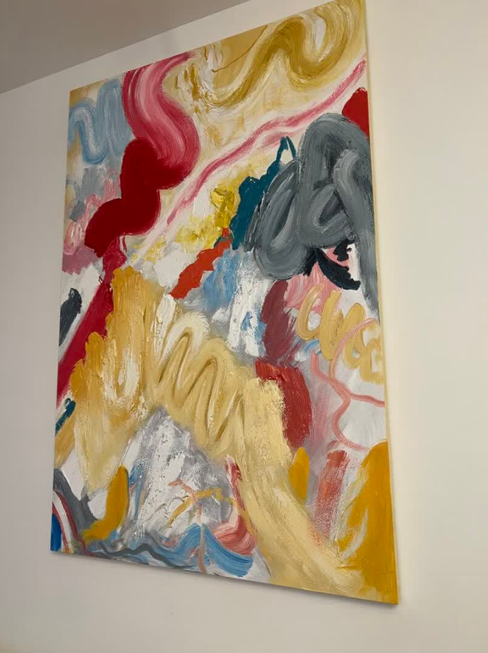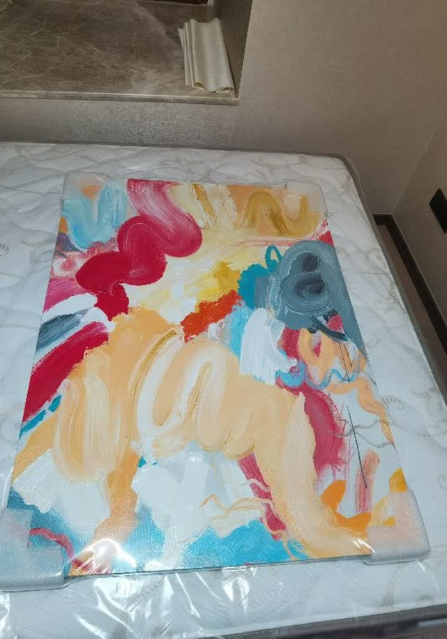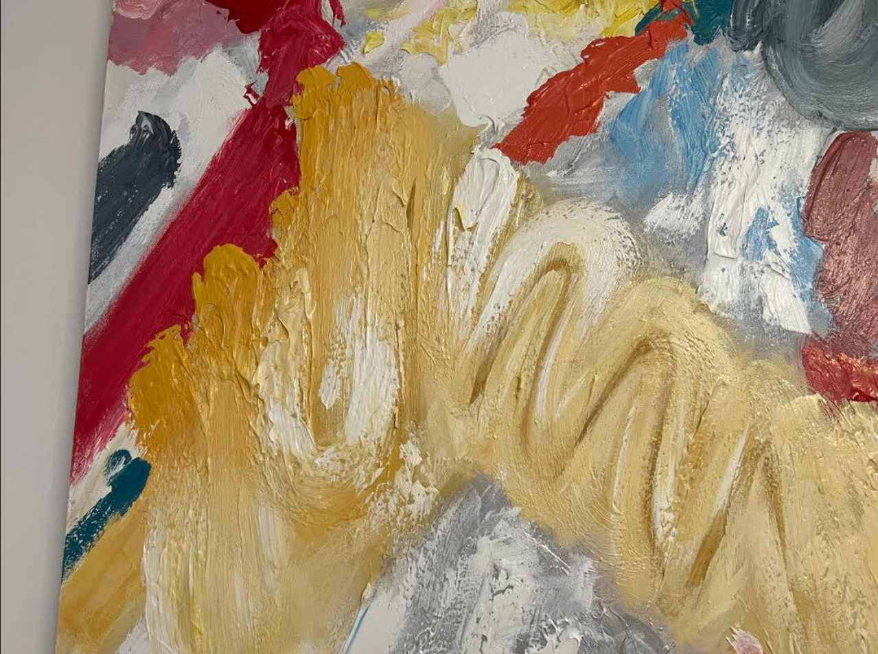This oil painting brings a burst of color and creativity to our space. The abstract design is captivating and the textured layers give it a gallery-like feel. It’s a beautiful piece of modern wall art that draws compliments from guests.