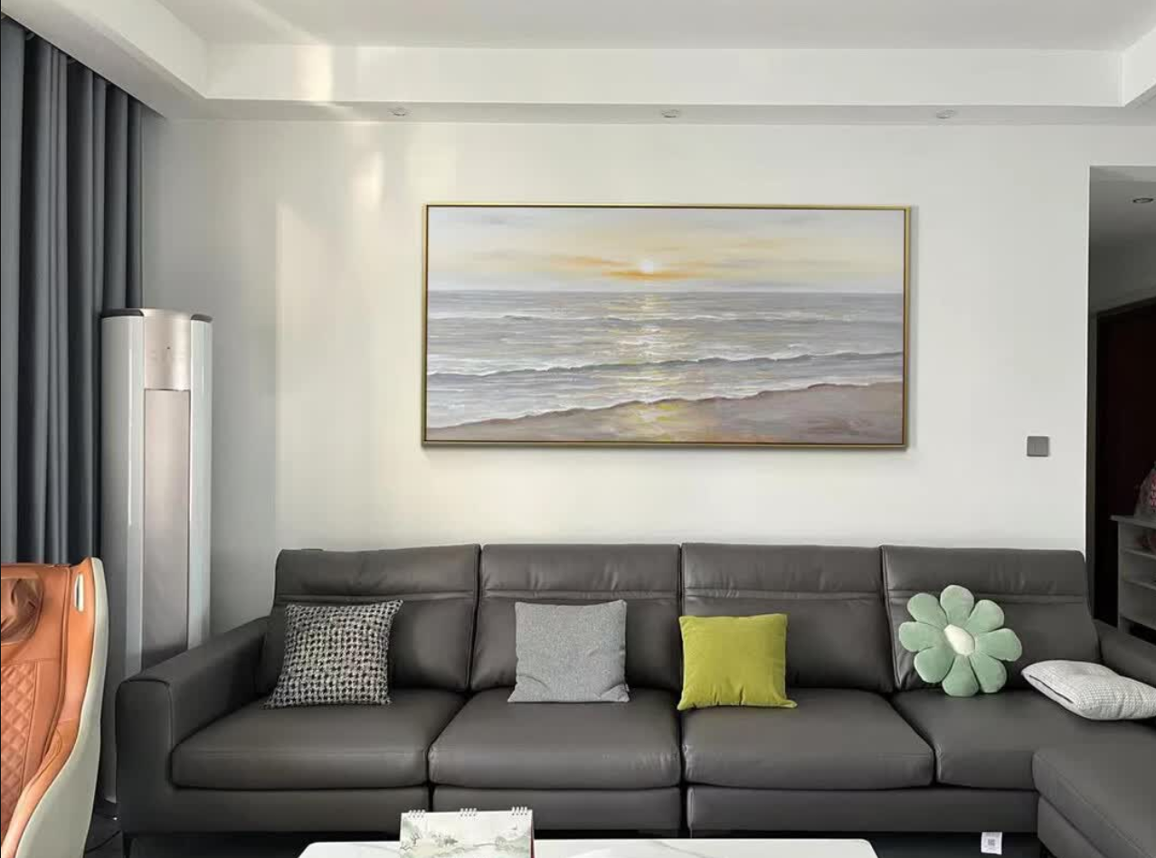 This abstract oil painting is stunning. The sunrise theme is subtle and artistic, and the hand-painted texture gives it a unique charm. It arrived on time and the packaging was very protective. Highly recommended for modern decor.