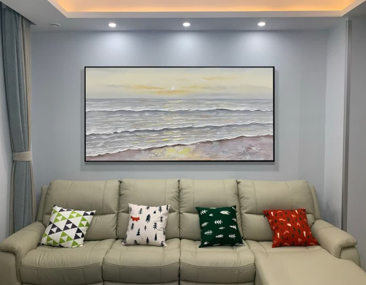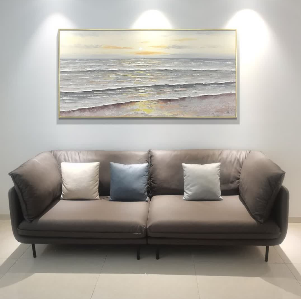 We love the peaceful vibes this sunrise painting brings. The abstract style is elegant and the texture adds a tactile richness. It’s a modern wall art piece that enhances our living room without overwhelming it.
