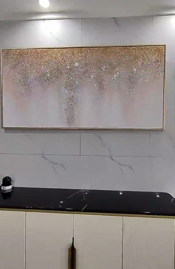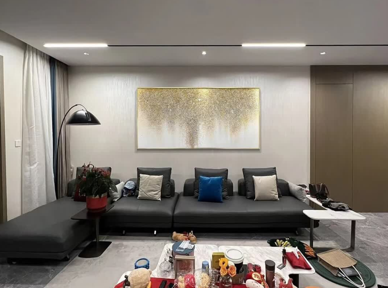 This modern decorative painting transformed our living room. The abstract design and light luxury feel make it a perfect match for our interior. The delivery was smooth and the packaging was very secure. Highly recommend this piece of wall art.