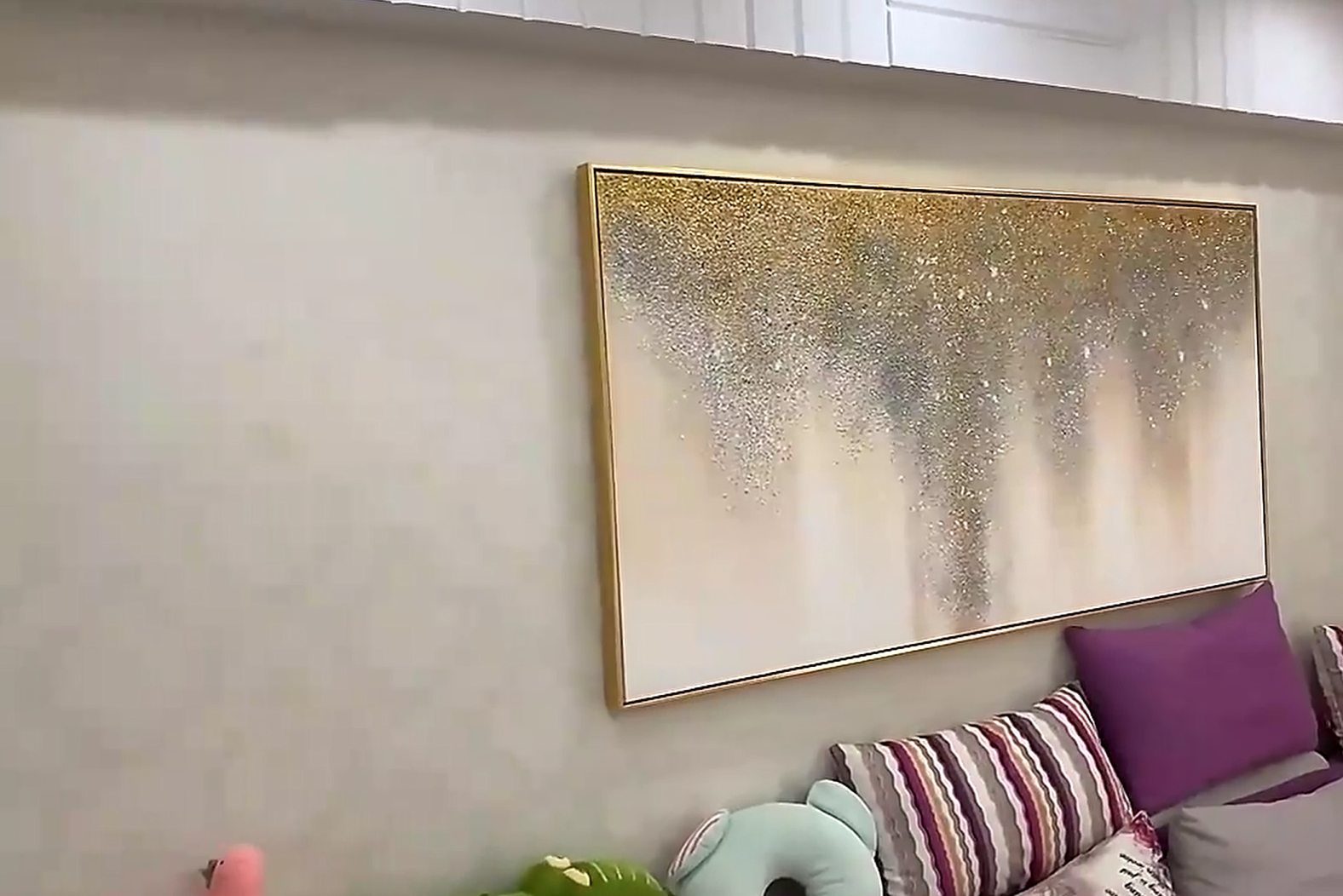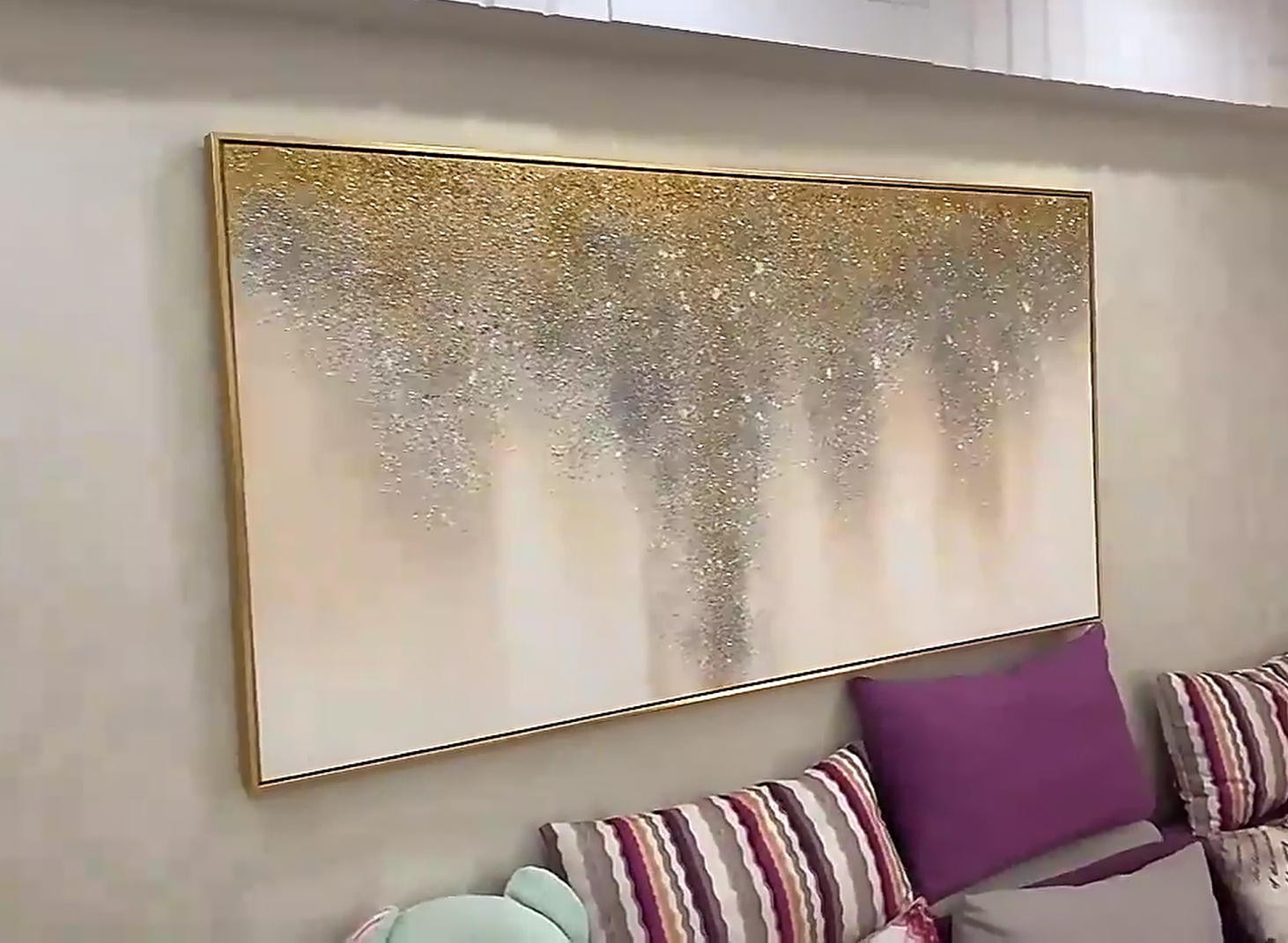 This abstract wall art is a refined piece that adds character to our space. The hand-painted texture and shimmering tones are subtle yet expressive. It’s a beautiful decorative painting that fits perfectly with our minimalist decor.