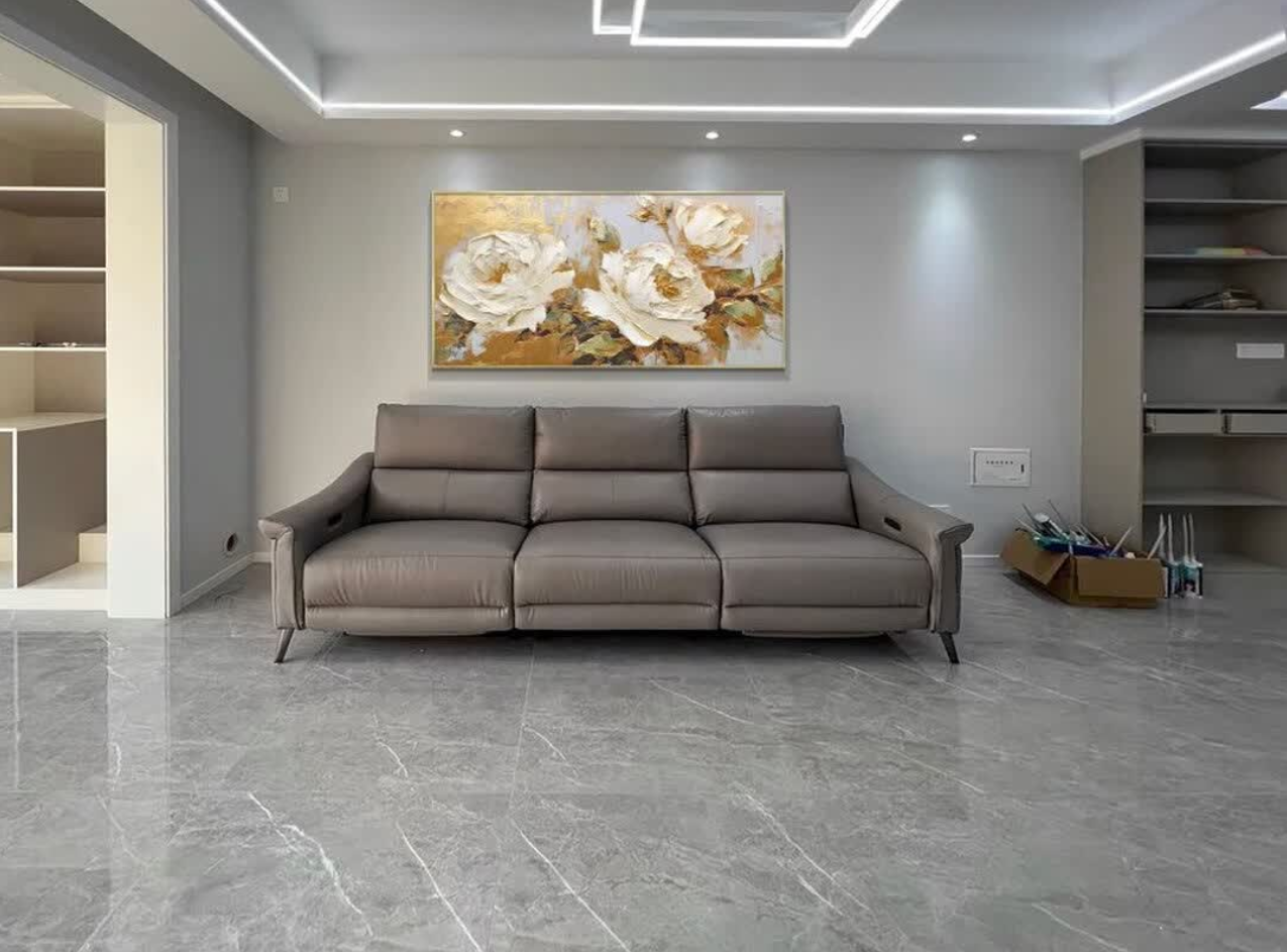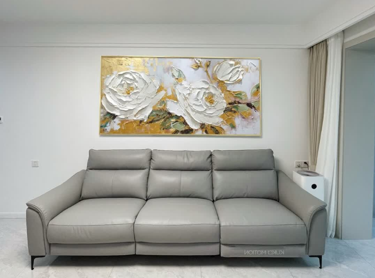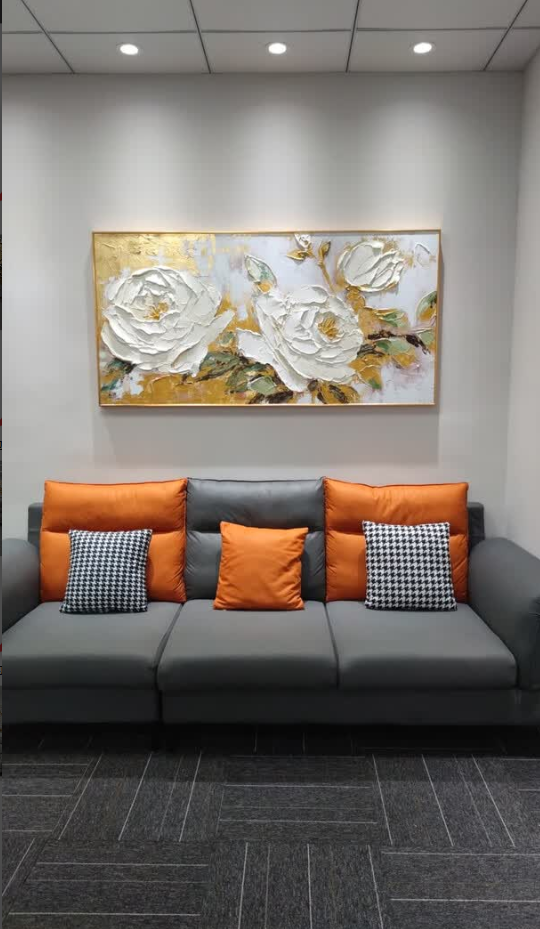 This hand-painted peony canvas exceeded my expectations. The texture and brushwork are stunning, and the gold accents catch the light beautifully. It adds a refined touch to our living room and feels like a true piece of abstract oil painting. The packaging was secure and the delivery was prompt.