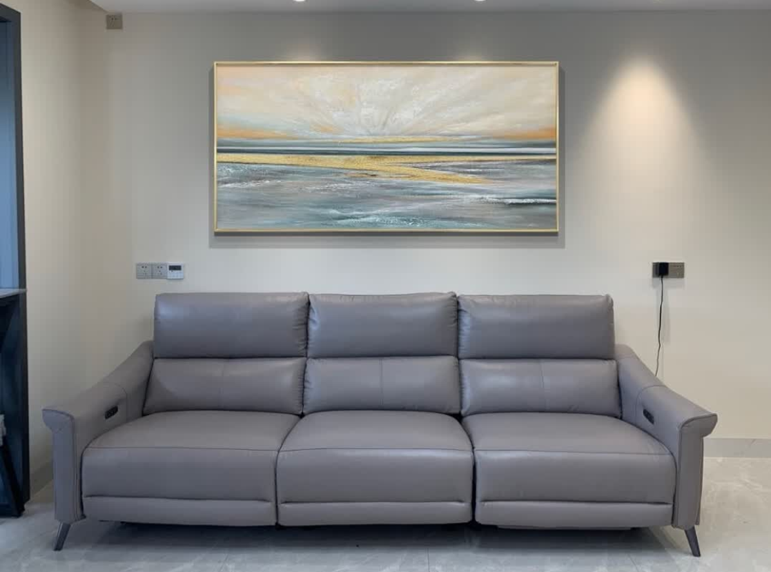 The abstract gold mountain painting brings a sense of calm and sophistication to our home. The hand-painted texture is rich and expressive. It’s a wonderful piece of modern wall decor that complements our furniture beautifully. Delivery was efficient and packaging was protective.