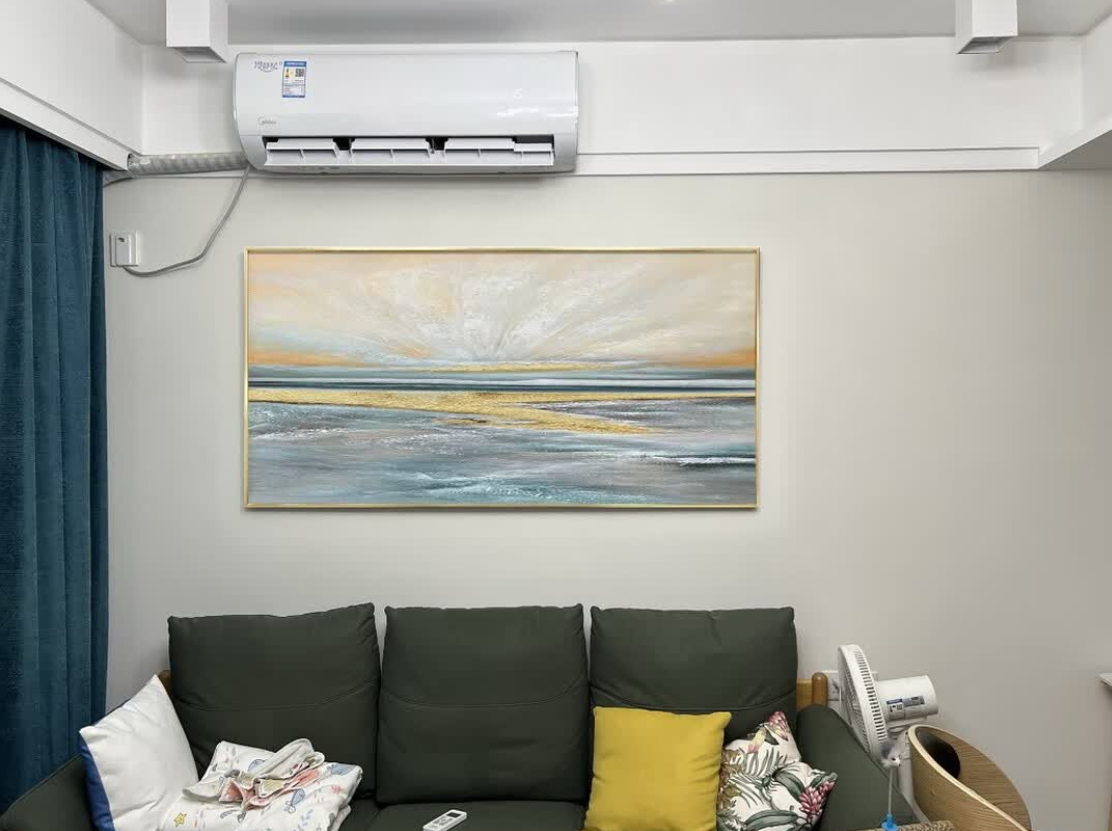 This abstract gold landscape canvas brings a peaceful energy to our living room. The hand-painted details are subtle yet expressive, and the overall composition feels refined and luxurious. It arrived well-packaged and in perfect condition. Highly recommend this decorative painting for modern interiors.
