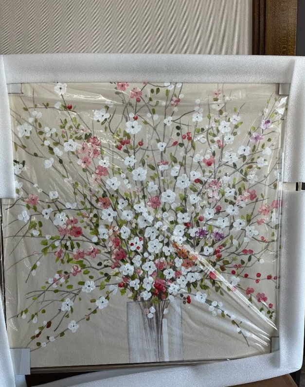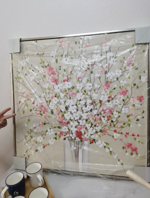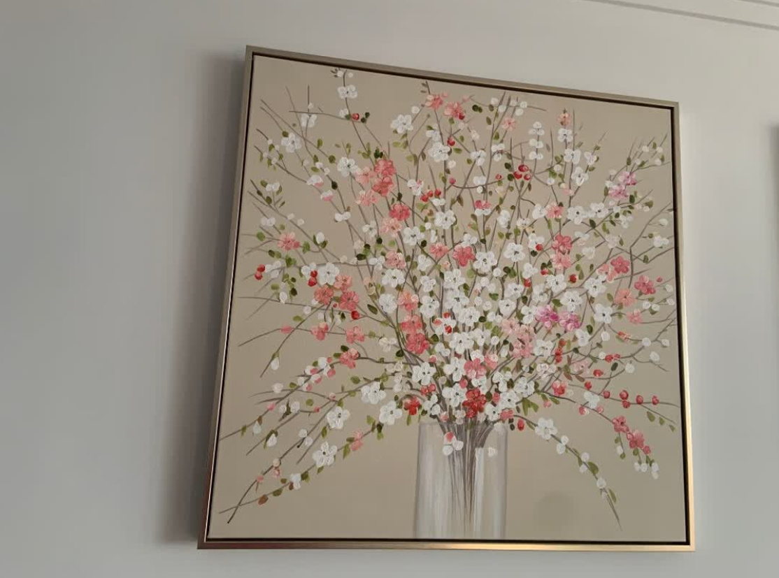 The painting is delicate yet impactful. The abstract floral design is perfect for modern interiors and the hand-painted texture gives it a unique charm. It’s now the focal point of our dining area. Very satisfied with the purchase.