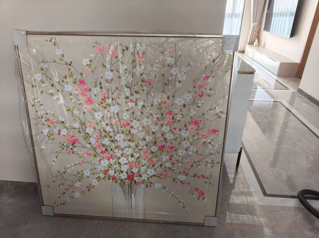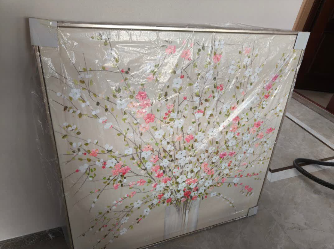 This large canvas painting is a true statement piece. The abstract floral design is elegant and the hand-painted texture adds depth. It’s ideal for entryway decoration and has transformed our space. Very pleased with the quality.