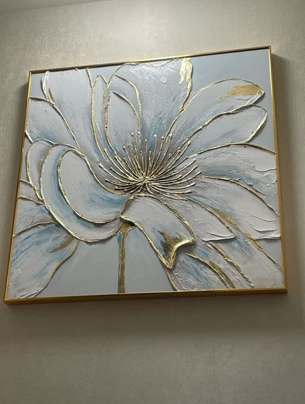 I’ve purchased many wall decor items, but this gold foil artwork stands out. The hand-painted flower is elegant and the overall composition is balanced and artistic. It arrived quickly and was packaged with care.