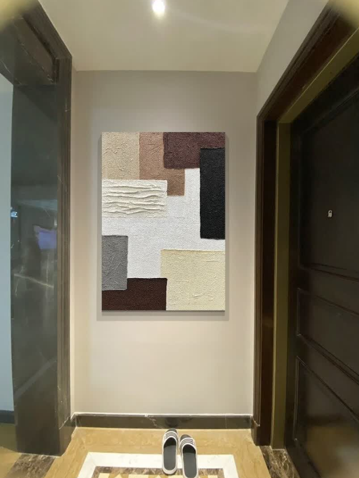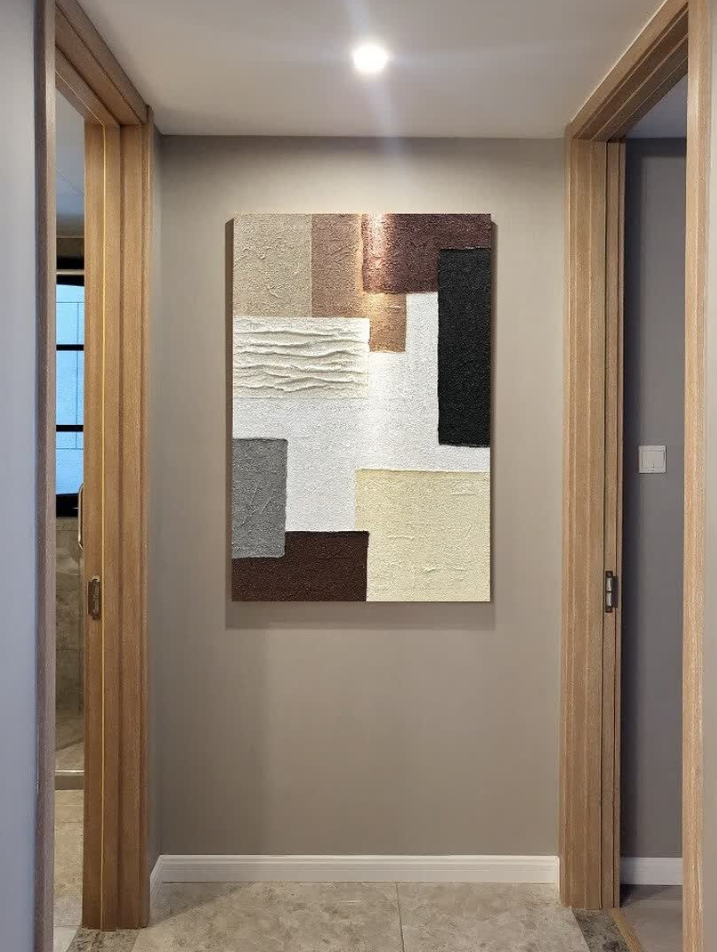 I love how this decorative painting brings warmth and depth to our entryway. The geometric shapes and textured oil finish are truly artistic. It’s a perfect example of modern abstract wall art. Customer service was responsive and helpful throughout the process.