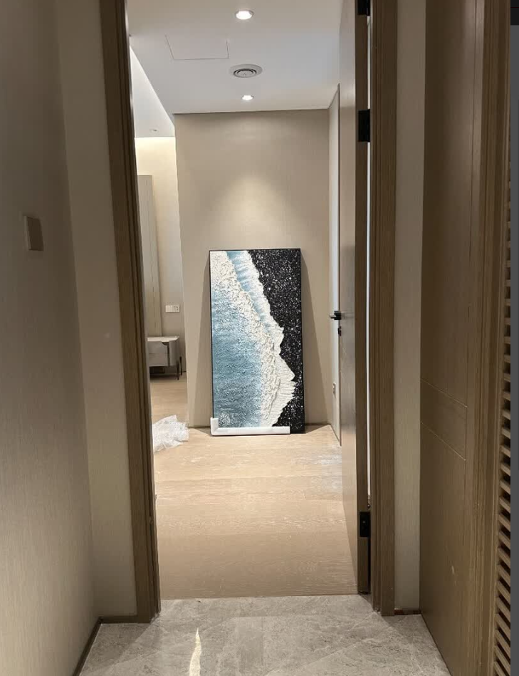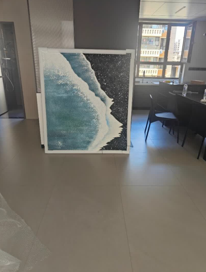 The painting brings a serene coastal vibe to our home. The abstract design and textured finish are both modern and timeless. It’s a beautiful piece of wall art that complements our minimalist decor perfectly.