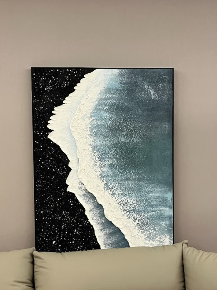 This textured abstract painting is the perfect statement piece for our entryway. The ocean-inspired design feels calming and artistic. It arrived well-packaged and in pristine condition. Highly recommend for anyone seeking modern wall decor.