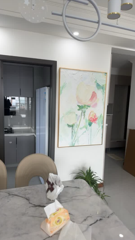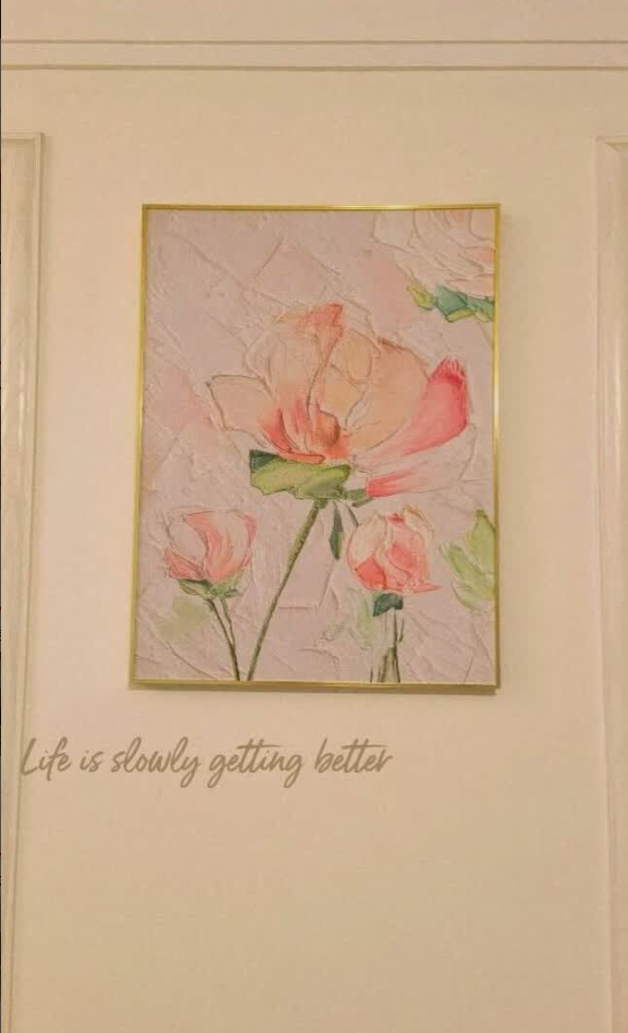 This abstract floral textured painting fits beautifully above my sofa. The pastel colors and thick brushwork create a luxurious atmosphere. It’s a decorative canvas that truly enhances the room’s aesthetic.