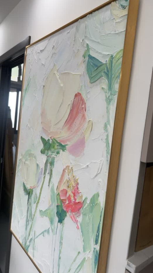 The painting arrived in perfect condition and looks even better in person. The impasto technique gives it a three-dimensional feel, and the floral elements are tastefully abstract. It’s a standout piece of modern wall art.