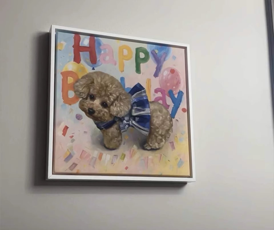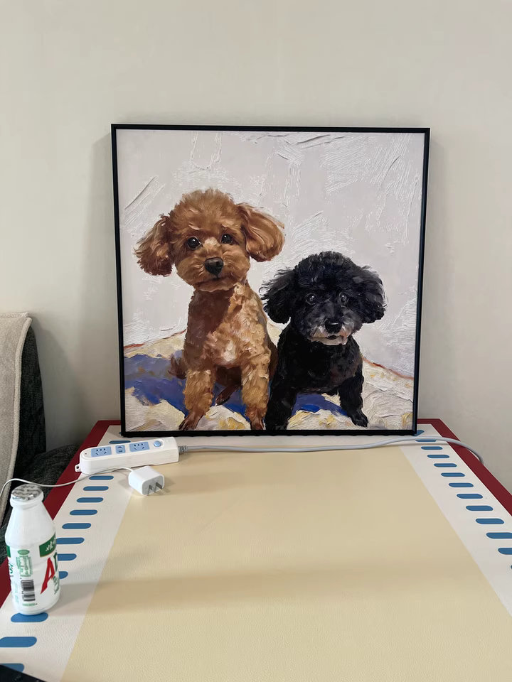 Creating a luxury pet gallery canvas wall was the best idea. Each painting captures a different personality. These authentic hand-painted oils bring a sophisticated, artistic vibe to our room.