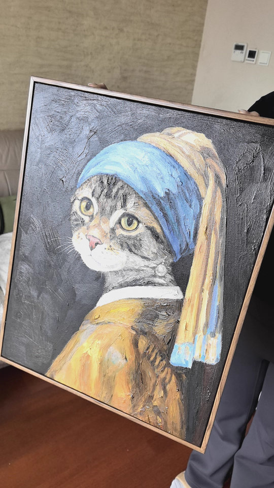 I am obsessed with this impressionist pet art. The artist combined my cat with a classic style seamlessly. It is 100% authentic hand-painted work on canvas. The texture is rich and professional.