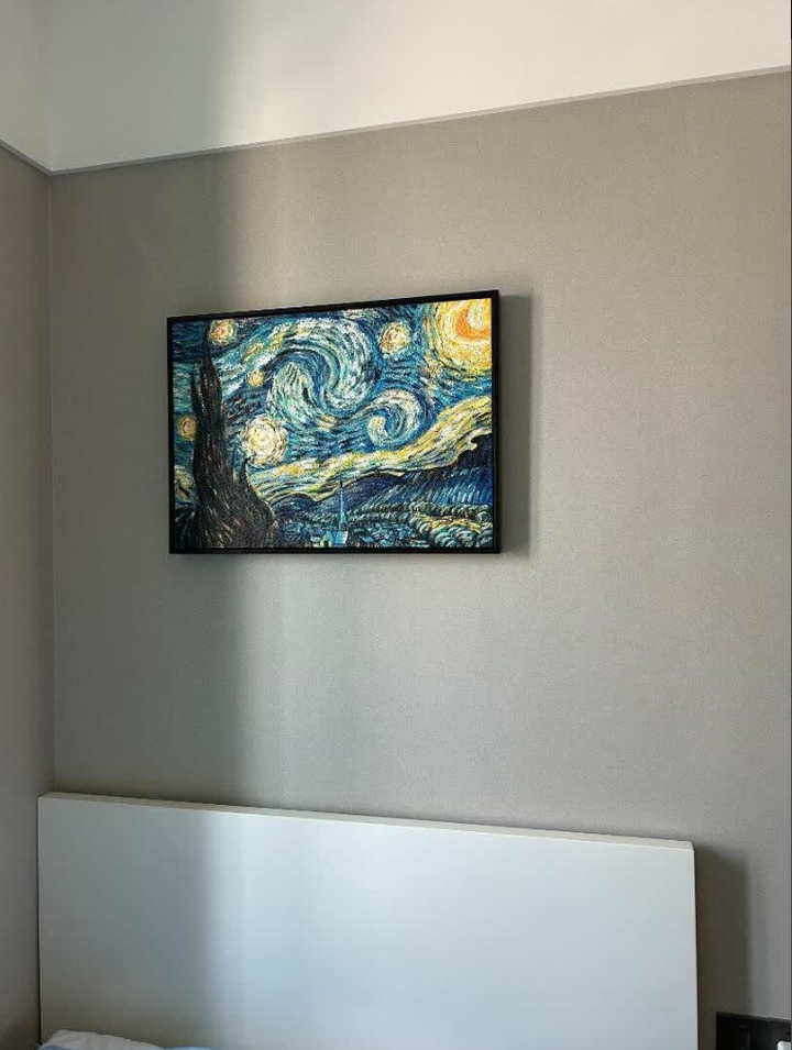 This canvas wall art brings an artistic vibe to our home. The Starry Night theme is beautifully interpreted and the abstract oil painting style is very appealing. It’s a decorative piece that feels both personal and refined.