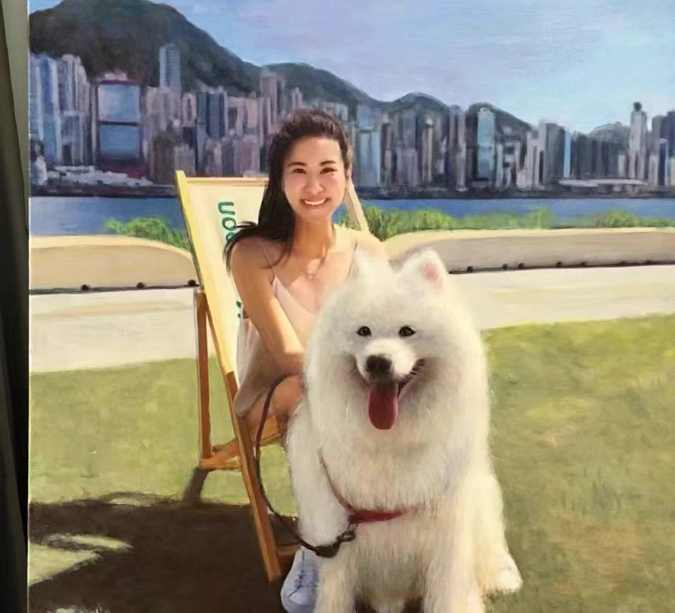 The artist did an amazing job on this pet and owner portrait. My dog's fur looks so fluffy and real. This custom canvas art is a beautiful way to celebrate our bond and decorate our space.