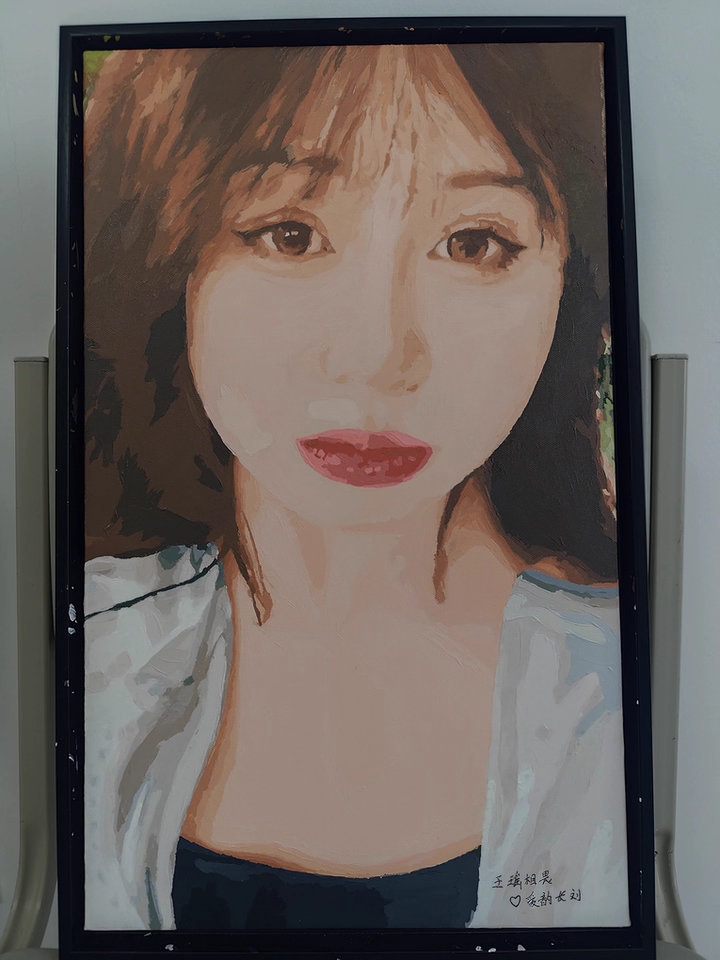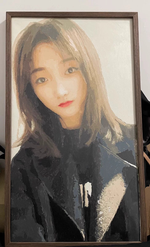 I am impressed by the bold strokes and unique texture of this handmade portrait. It adds a sophisticated touch to my room as modern wall art. A truly artistic way to preserve a favorite memory.