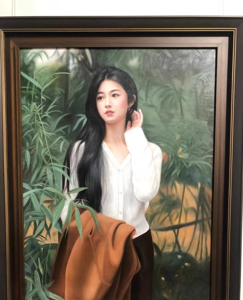 I am impressed by the realism of this professional custom oil work. It looks like a classic museum piece. A dignified and elegant hand-painted memorial portrait of the highest quality.